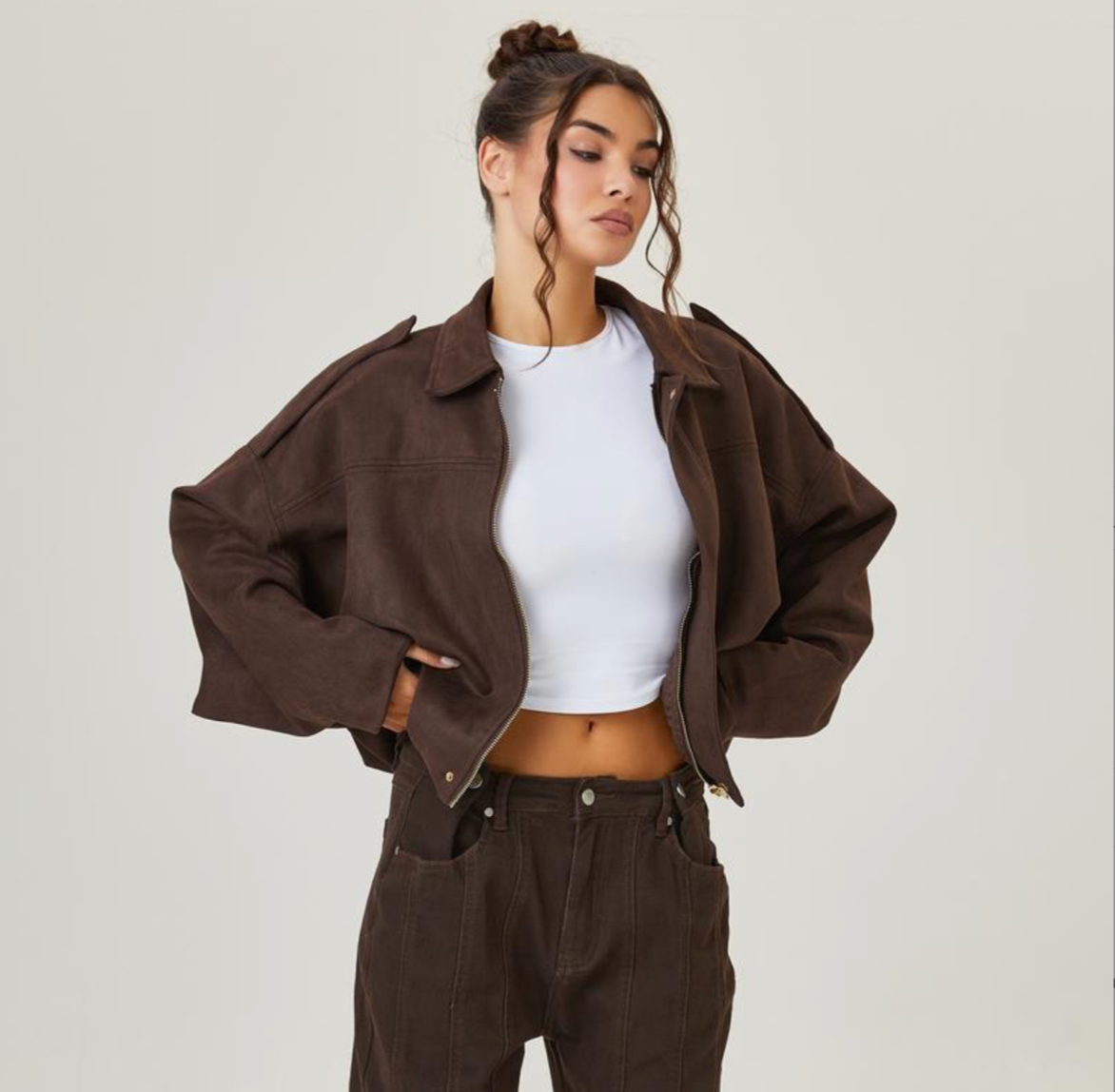 The Urban Eclipse Jacket isn’t just outerwear – it’s a wardrobe statement. With its boxy cut and soft-touch fabric, this piece delivers both comfort and a high-fashion edge. Perfect for layering over a crop top or hoodie, it gives you that effortless chic look without even trying.